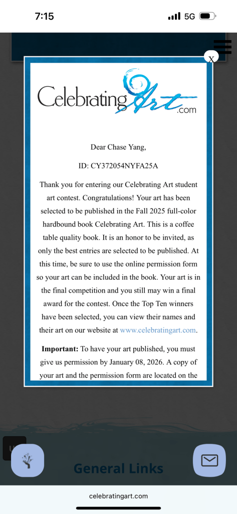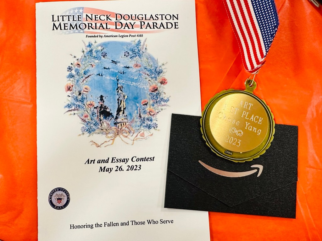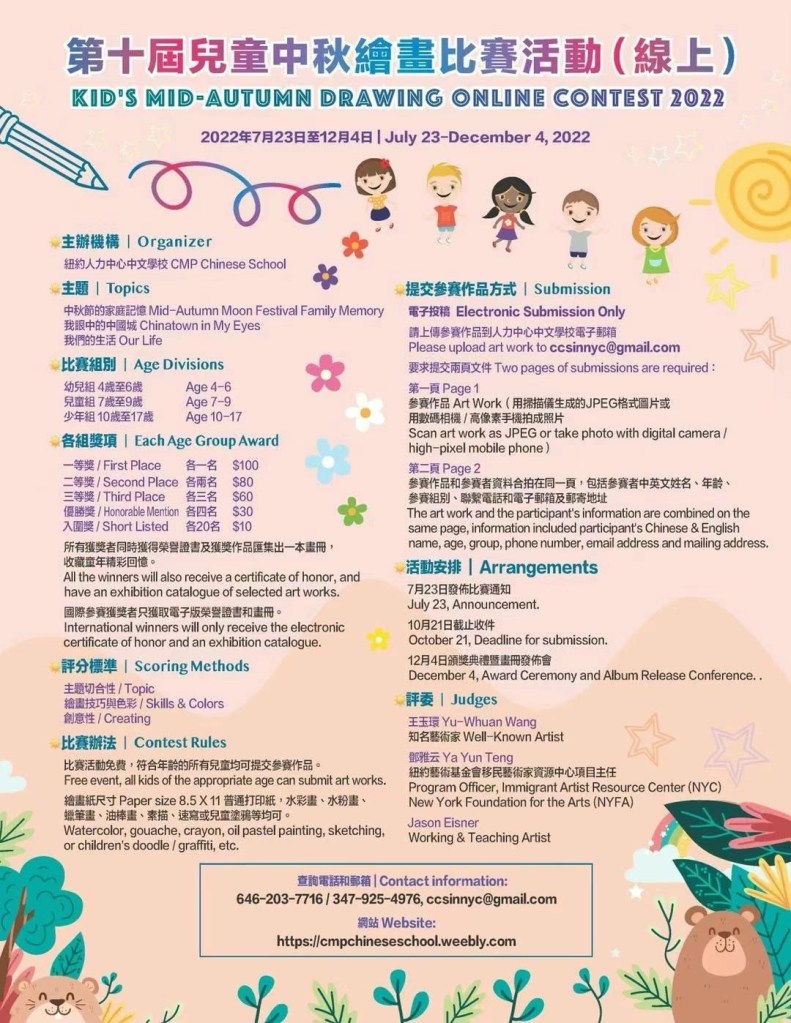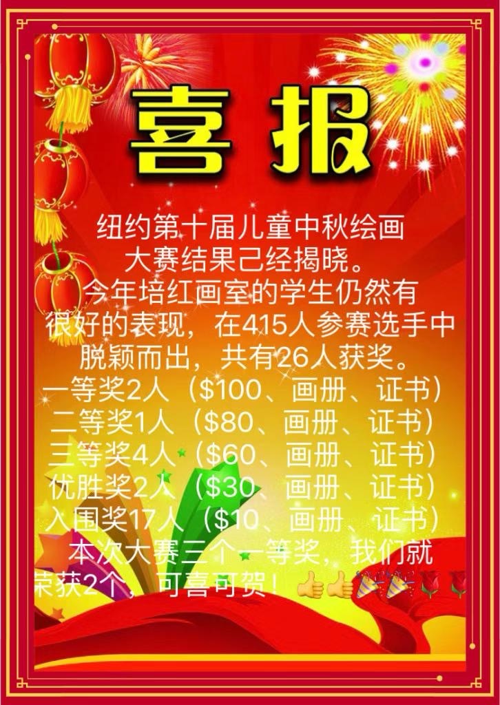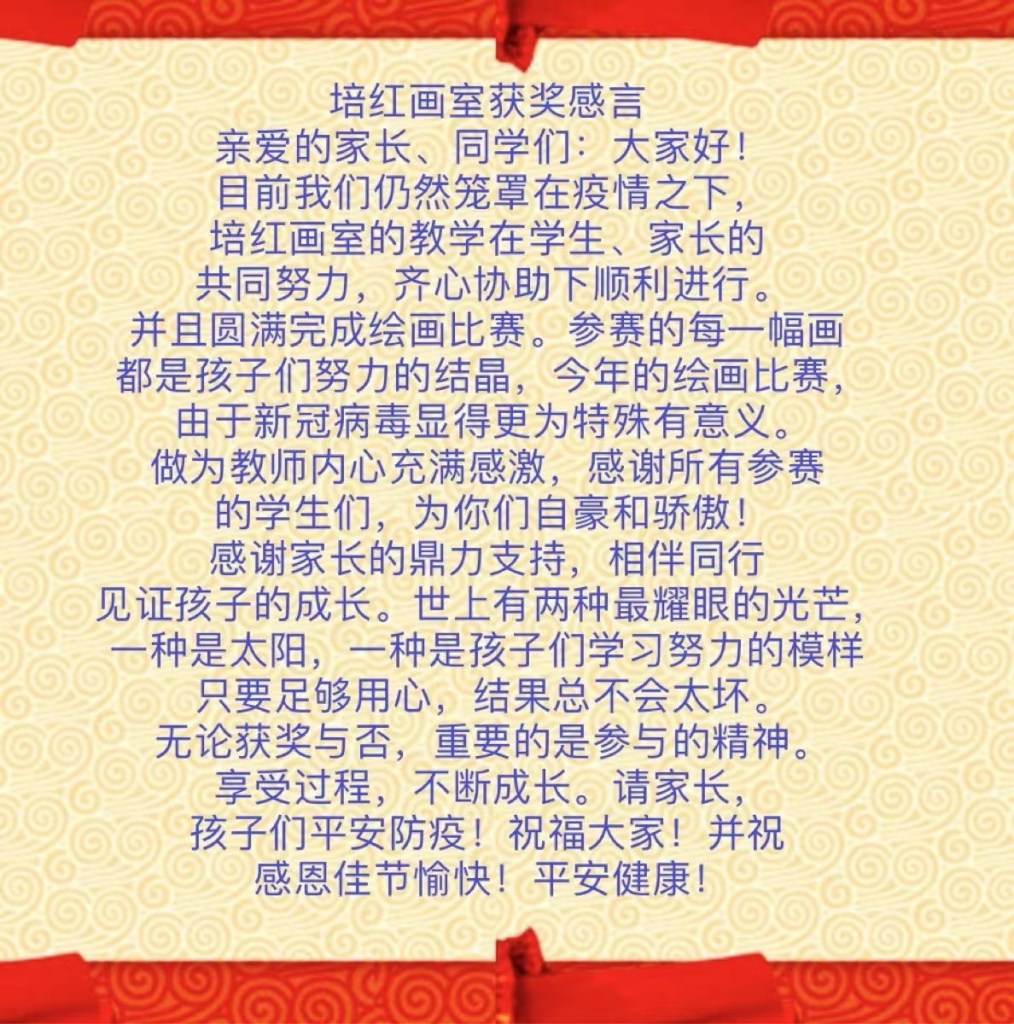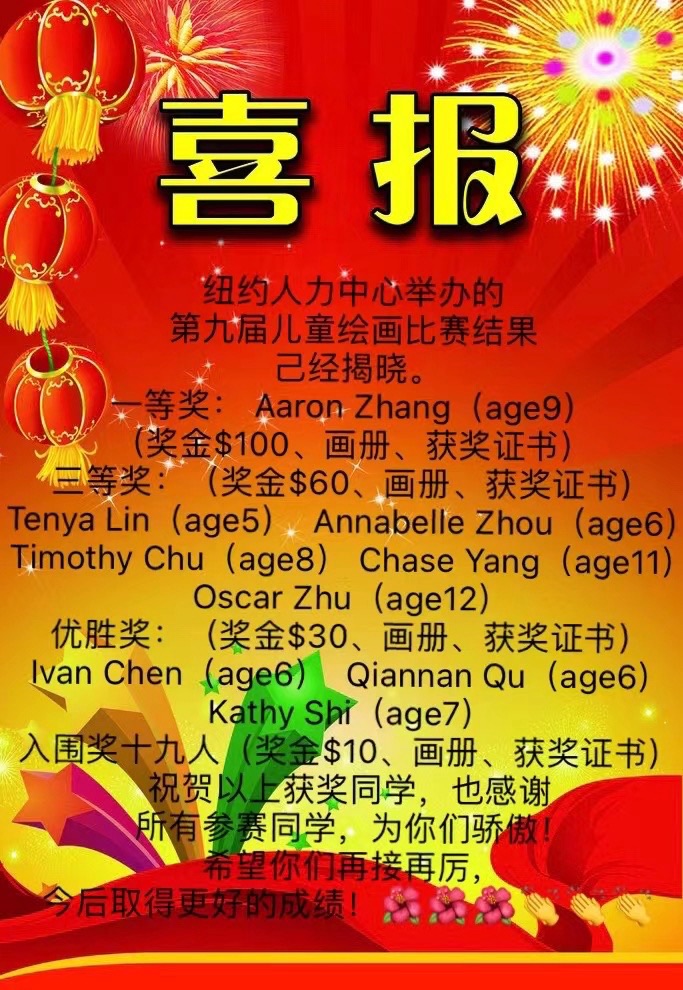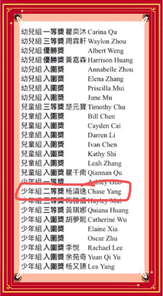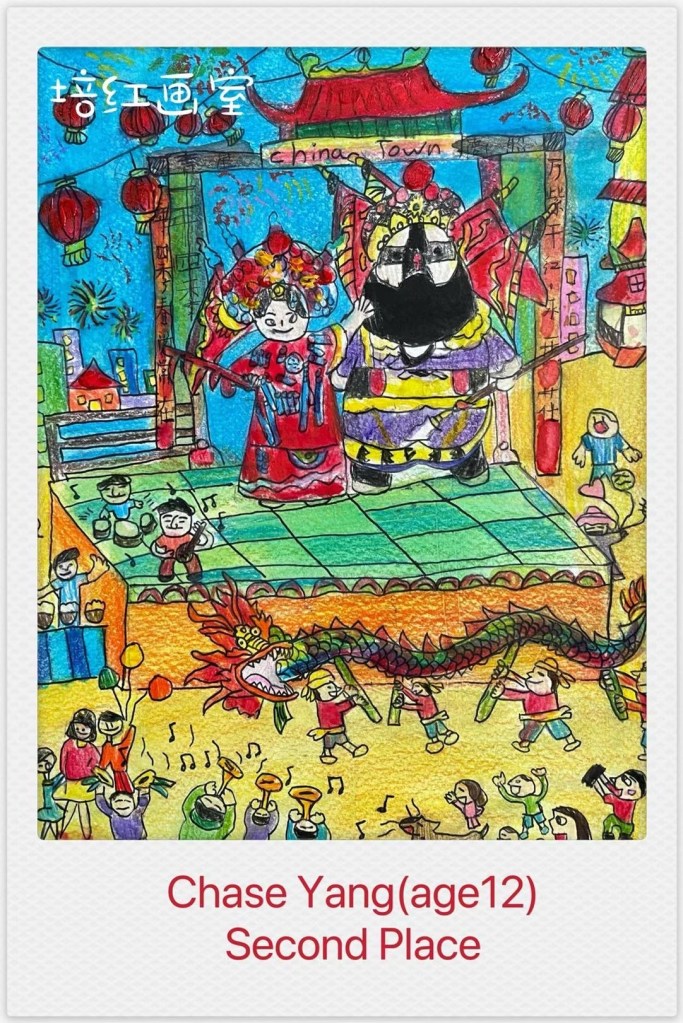2023 Mid Autumn Day Winner – Second Place. Chase 纽约第十届儿童中秋绘画比赛获奖 第二名 老师派他做少年组代表上台发言领奖感言